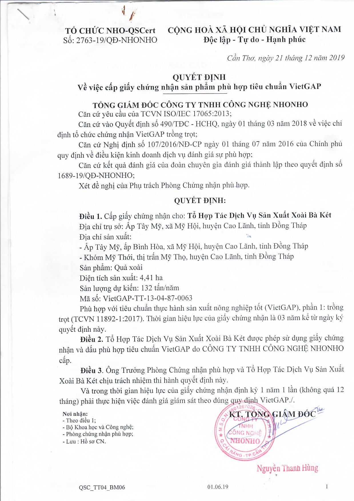 Tổ hợp tác sản xuất dịch vụ Xoài Bà Két